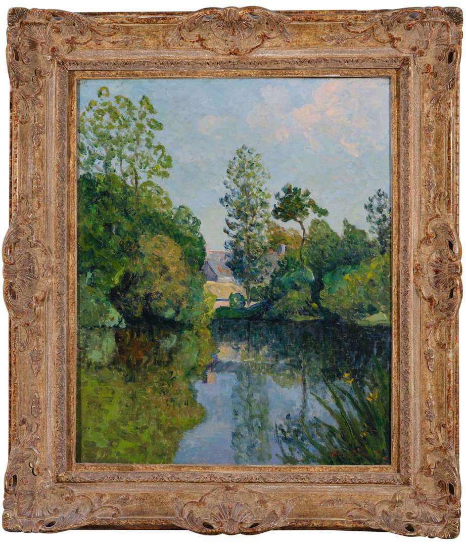 Seulement, il faut dire que ni le cénacle, ni son chef n'exercèrent sur Maufra la moindre influence. Ils exaltèrent pendant toute la soirée les vertus du vert véronèse et du jaune de chrome employés purs, et hors desquels il n'était point de salut pour la peinture nouvelle. Il n'était pas sur ce chemin et nous savons déjà que sa nature était de creuser avec ténacité un sillon commencé et de subordonner au sentiment qui le dominait les moyens patiemment acquis. [...] Le lendemain, au bal du 14 juillet, Gauguin redevenu ce qu'il était réellement, un très grand enfant, dansa beaucoup, ne but pas moins, et le 15 il s'en alla. [...] Maufra [...] n'avait pas de goût pour les voisinages camarades, et l'émulation ne lui était pas nécessaire : il se la créait constamment avec lui-même. Dès sa jeunesse, nous l'avons vu, et nous ne cesserons de le voir, concentré, solitaire, se renfermant beaucoup en lui et chez lui, lorsqu'il ne va pas " sur le motif ", le plus loin possible des peintres, se créant même ses amitiés dans le monde littéraire, scientifique ou politique, de préférence au milieu pictural. Il se trouve même beaucoup plus à l'aise avec des paysans, avec des marins, qui lui offrent des analogies et des harmonies avec les larges et simples aspects de la terre, les rugueuses solidités des rochers, la vie végétative des vieux arbres. De plus en plus, il aimera ces primitifs et sera aimé d'eux. C'est cette loyauté qu'il ne trouva pas suffisamment à Pont-Aven pour y rester plus de quelques mois. Cependant il n'y perdit pas son temps : quelques vues de la rivière, du moulin à eau, des clairières voisines, des groupes de chaumières, portent déjà sa marque et méritent de figurer dans son oeuvre.»