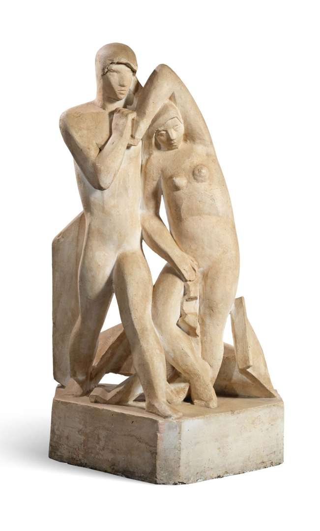 Traitées de façon mono-volumétrique, des adolescentes aux formes lourdes et sensuelles hantent la quarantaine de Csaky. " Tout ici est passages, modulations, appels au sens de la vue. Les détails ne prennent toute leur valeur qu'en fonction de l'ensemble. " (Waldemar George) Revenant à une présentation plus sage de la figure, son cubisme s'humanise. Le bloc possède encore des plans opposés, mais les arêtes sont moins nettes, moins cassantes et le passage d'un plan à l'autre plus souple, la modulation plus enveloppée. Une certaine sérénité se dégage de ces pièces. Son oeuvre d'âge mûr est paisible, il a livré son combat.