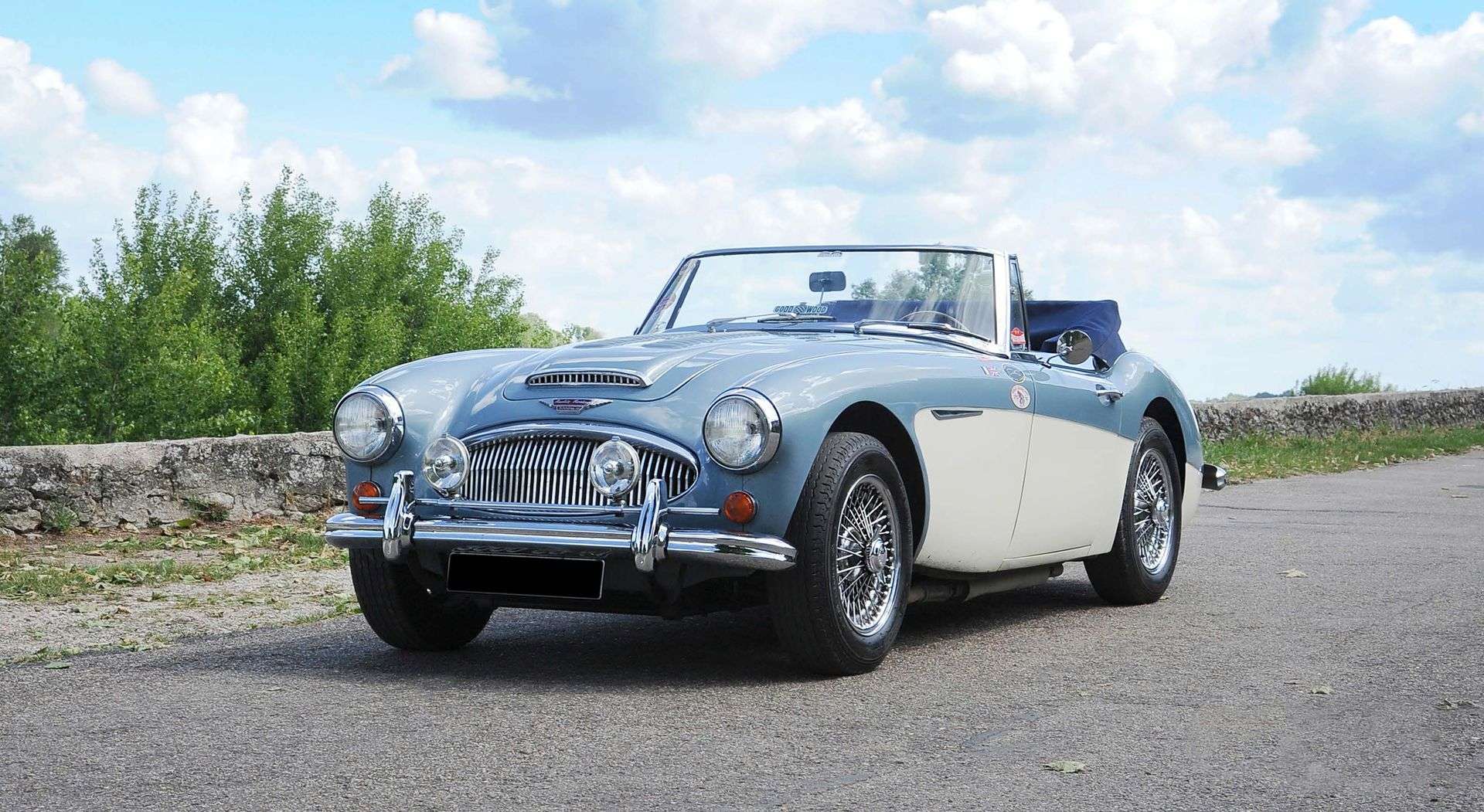 L’Austin Healey présentée ici fut mise en circulation pour la première fois en 1965 aux USA. Elle fut importée en France dans les années 1990 alors qu’elle résida en Californie de nombreuses années, dans un climat sain pour les voitures comme nous le savons.