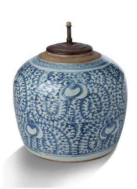 H. 22 cm - D. 24 cm (Lamp-mounted, neck possibly cut and ground, lid missing, cooking cracks, small lack of material)