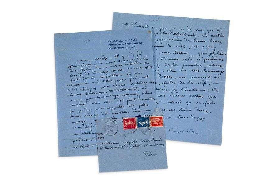 Signed autograph letter addressed to Misz MARCHAND Saint-Tropez, Le Treille Muscate, s.d. 3 pages in-4 in ink on blue paper.