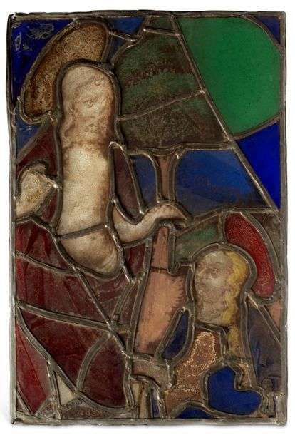 VITRAIL POLYCHROME représentant Noli me tangere. Marie Madeleine est ageno
