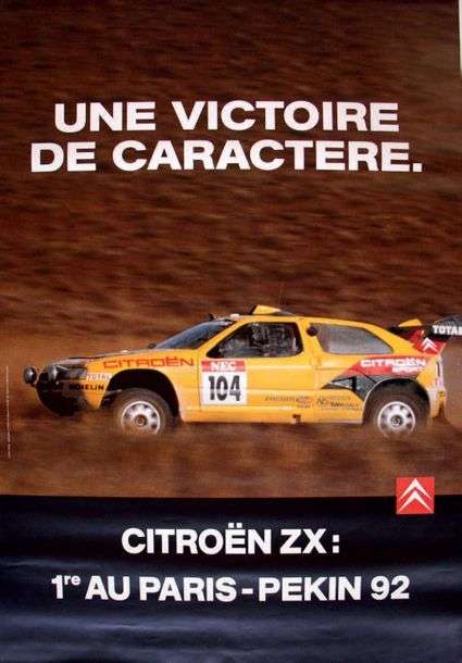 Poster presenting the victorious Citroën ZX at the Paris - Beijing 1992 RSCG