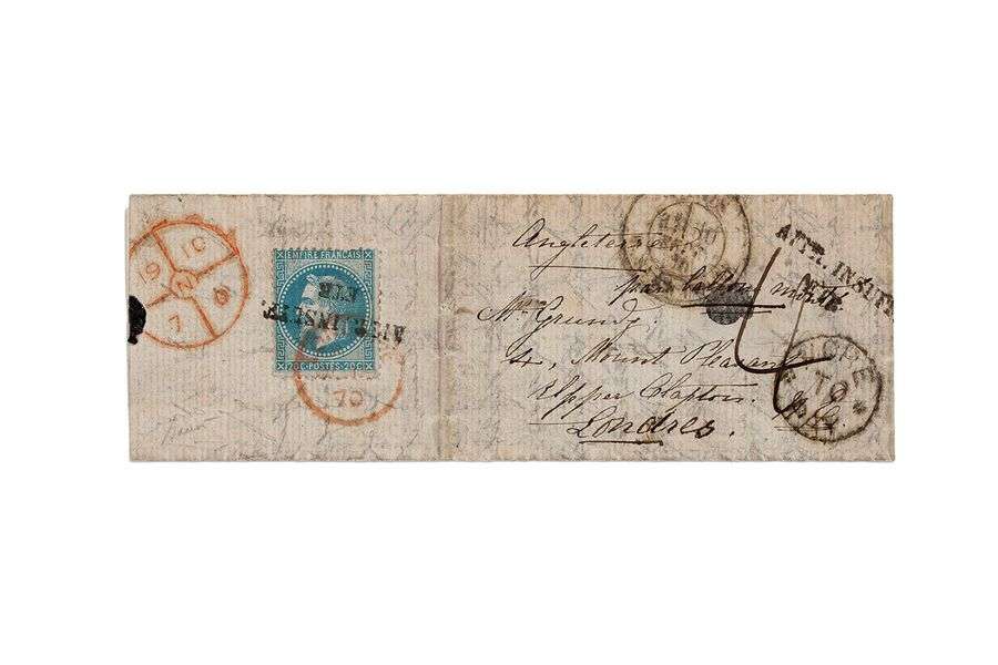 A cover entrusted to the Aeronauts of the balloon THE UNITED STATES and another one to the aeronauts of COLONEL CHARRAS is enclosed. B/TB.