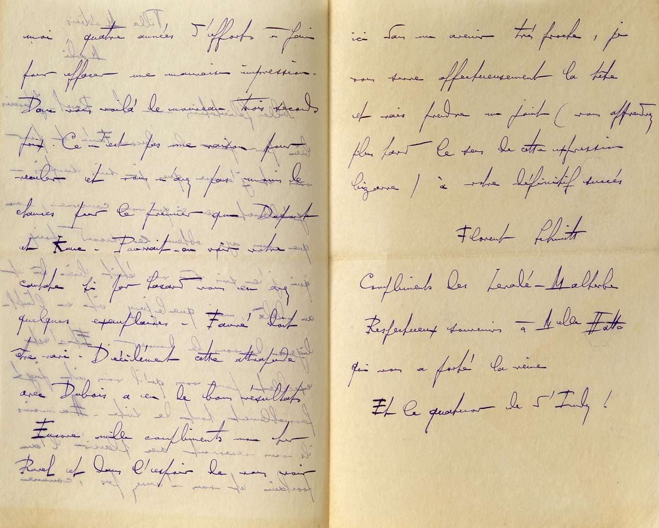 Lettre autographe signée de Florent SCHMITT, à la Villa Médicis, s.d, adressée à Maurice RAVEL. Avec enveloppe.3 pages in-8.
