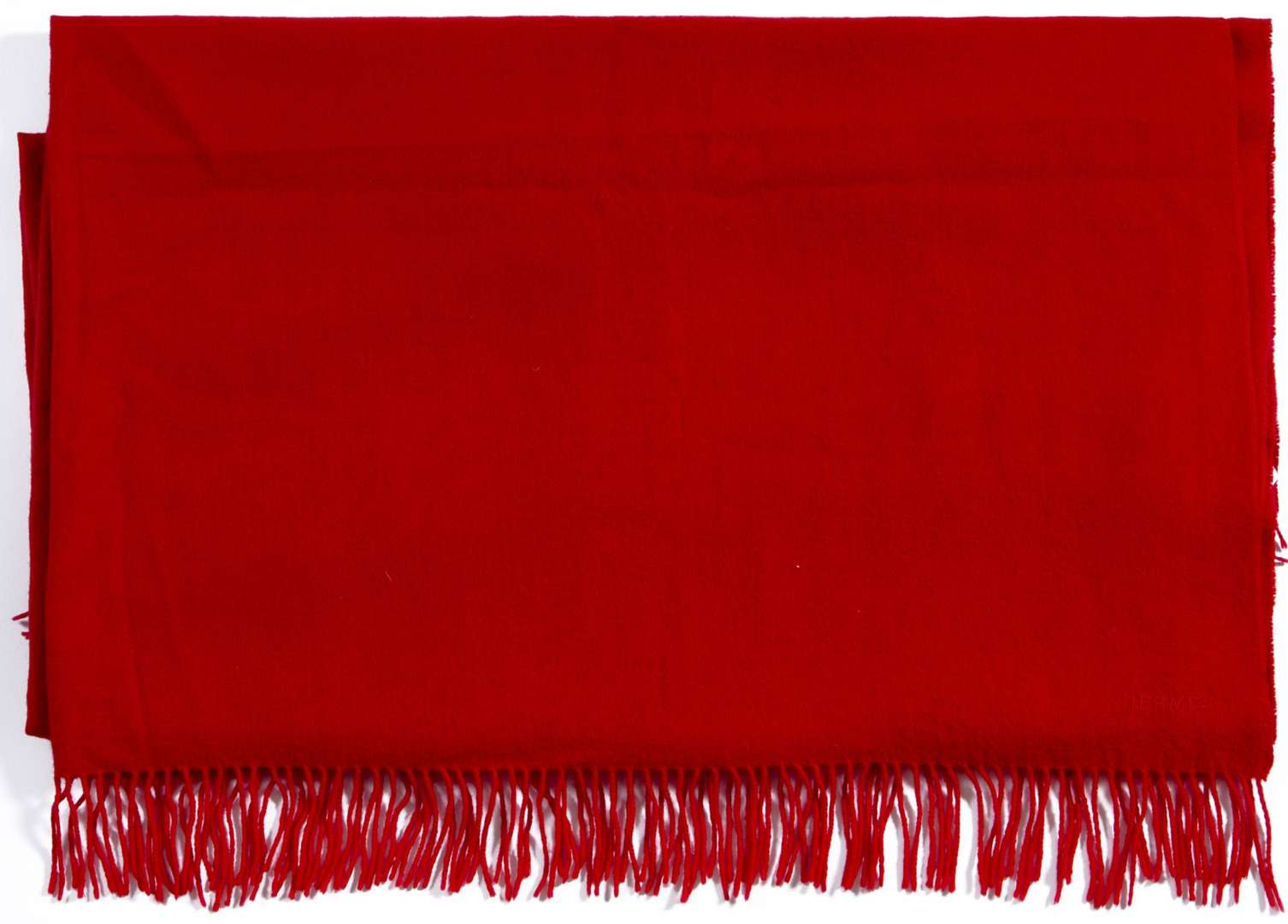 Large fringed red shawl in cashmere and wool