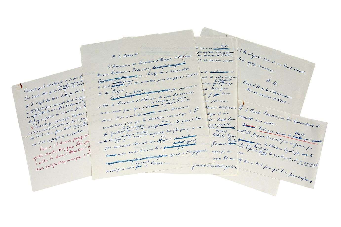 L.A.S. "A.M." (draft), [ca. 1975], to Michel GUY, Minister of Culture| 2 1/2 pages in-4 and 1 1/2 pages in-8.
