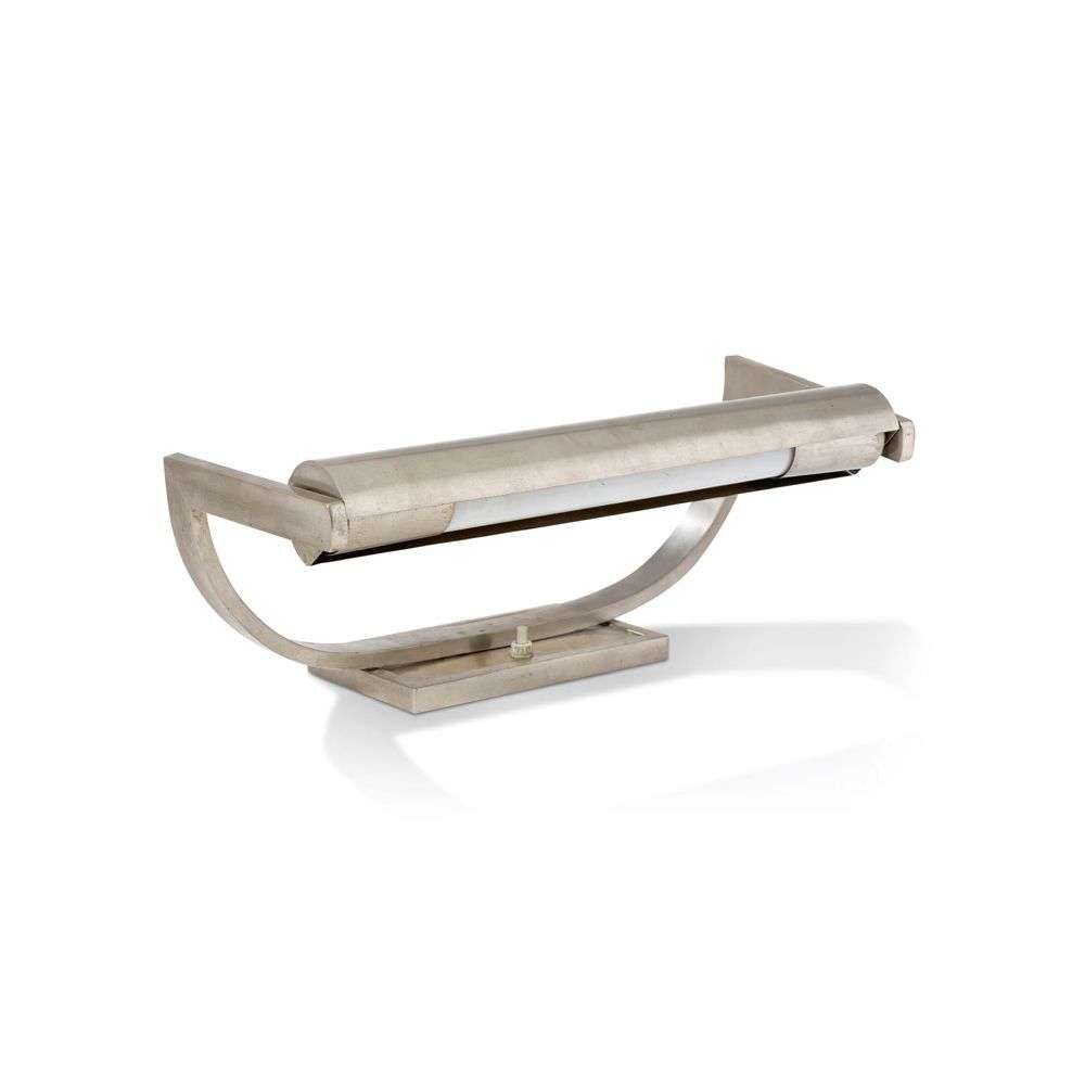 A table lamp, nickeled metal structure.