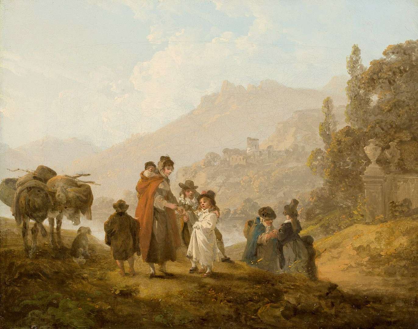 Travellers in Wales, canvas (pair), one monogrammed at the bottom