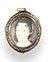 Pendentif en vermeil contenant une miniature sur carton représentant un portrait de femme. Au dos, un monogramme en cheveux. Travail français du XIXème siècle. Dim.: 3,5 x 2,7 cm