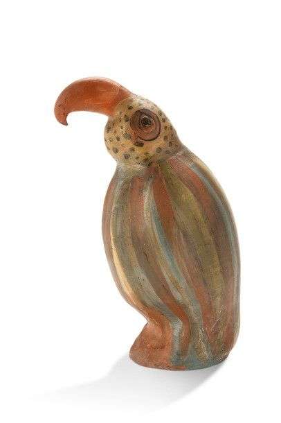 Grand cacatoès en terre blanche à décor peint polychrome