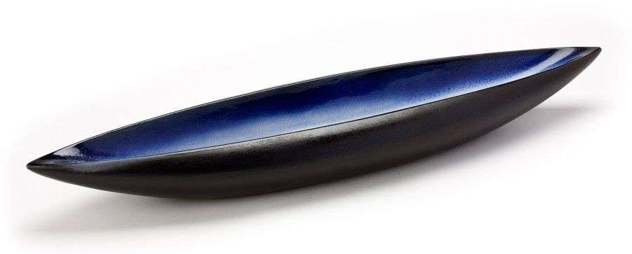 Coupe pirogue, émail intérieur bleu vaporeux, extérieur noir