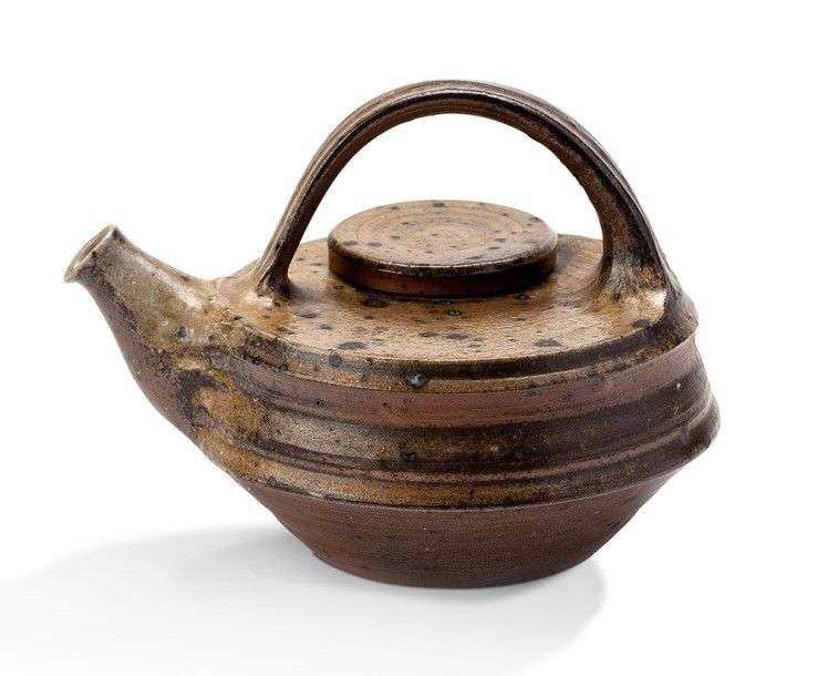 Théière en grès pyrité, à couvercle décalé à droite de l'anse