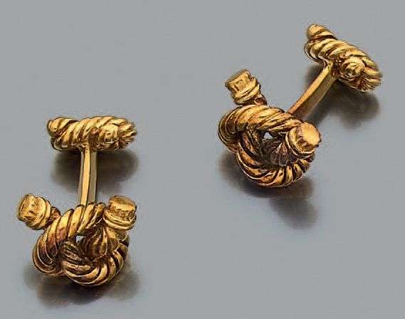 +Paire de boutons de manchettes en or jaune 18k (750) composés de noeuds m