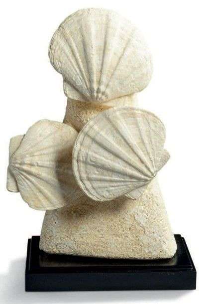 Bloc de trois grands spécimens de Gigantopecten, Miocène. Lacoste, Vauclus