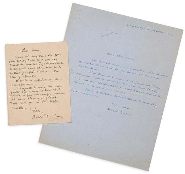 2 L.A.S., 11 janvier 1920 et 29 janvier 1920, à Raymond RADIGUET| 1 page in-4 et 1 page in-12.
