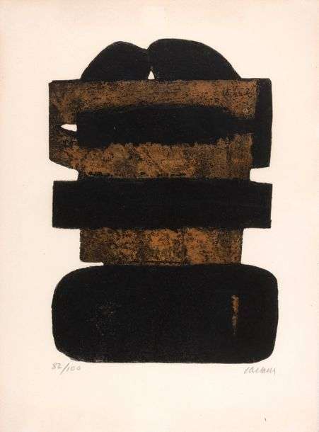 The work we are presenting for sale is a fine example of the perfection that Soulages sought to achieve in his black paintings. In the 1950s he began making prints with the aim of renewing his pictorial technique. The varnish on the etching's copper plate is scraped and scratched here. Soulages also used acid on the copper plate, which gives the work its perforation effects. He made etching technically innovative by transforming the process, which was no longer traditional and conventional.