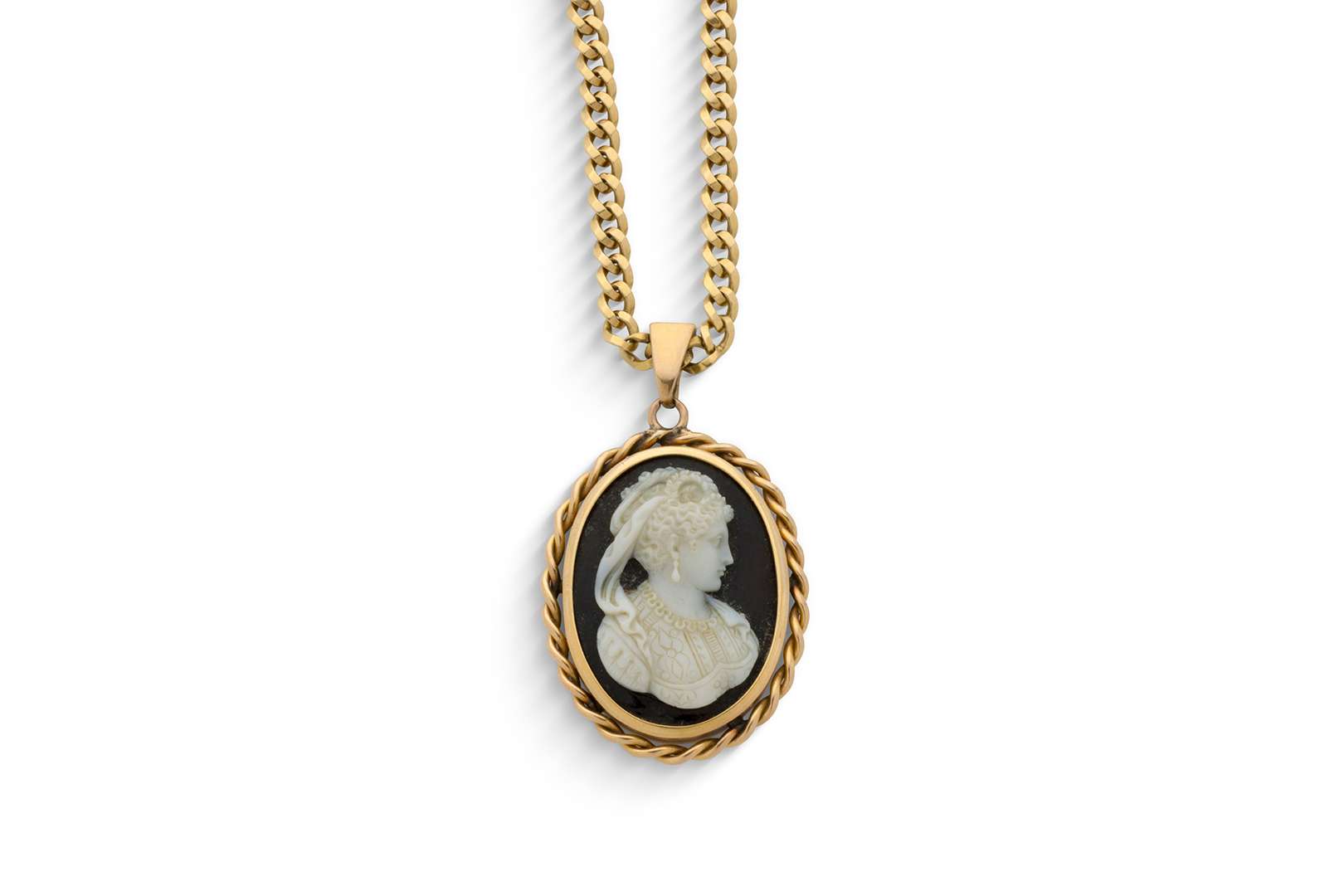 Agate and 18-carat gold (750) cameo pendant.