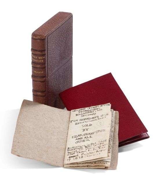 Exceptionnel manuscrit miniature inédit de la jeune Charlotte Brontë, alors âgée seulement de 14 ans. Il s’intitule : « SECOND SERIES OF THE YOUNG MEN’S MAGAZINES. N° SECOND. FOR SEPTEMBER 1830 Edited by Charlotte Brontë. SOLD BY SERGEANT TREE AND ALL OTHER Booksellers in the Chief Glass Town Paris Ross GT Parrys GT Wellingtons Glass Town &c &c &c ... Finished August 19 1830 Charlotte ». [Deuxième série de The Young Men’s Magazines – N° 2. A paraître en septembre 1830 publié par Charlotte Brontë. Vendu par Sergeant Tree et tous les autres libraires parmi les libraires de la Fédération de la Grande Glass Town : à Paris, dans le royaume de Ross G[lass].T[own] et les territoires de Parry et de Wellington G[lass].T[own], etc, etc, etc…Terminé le 19 août 1830. Charlotte].