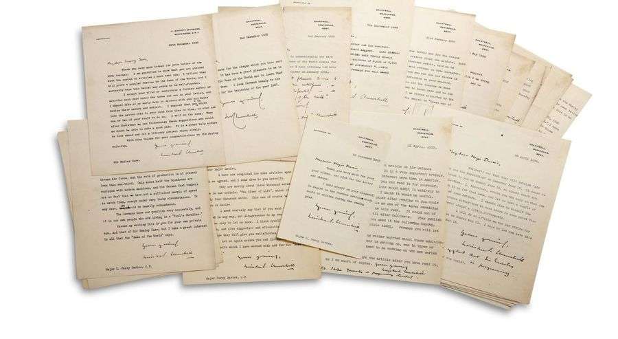 29 L.S. « Winston S. Churchill » avec quelques ajouts autographes, 1934-1951, à l’éditeur de News of the World, A.G. WATERS, ou d’autres responsables du journal | environ 34 pages la plupart sur ff. in-4 à en-tête et vignette | en anglais.