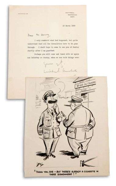 L.S. « Winston S. Churchill » avec compliment autographe, Chartwell, Westerham, Kent 23 mars 1939, au commandant d’escadron [et futur Commodore de l’air et parlementaire] Vere HARVEY | 1 page in-4 dactylographiée | en anglais.