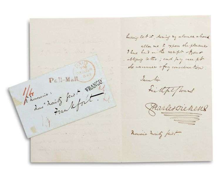 L.A.S. « Charles Dickens », Athenaeum Club, Londres 27 juin 1847, à Moritz FEIST, à Francfort | 2 pages in-8, enveloppe | en anglais.