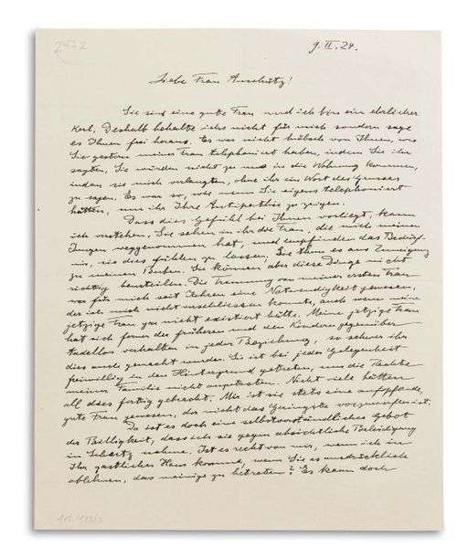 L.A.S. « A. Einstein », 9 février 1924, à Frau ANSCHÜTZ | 1 page et demie in-4 | en allemand.