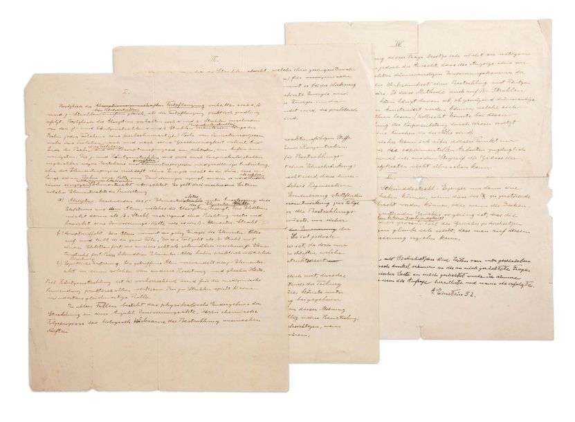 MANUSCRIT autographe signé « A. Einstein », [vers 1930 ?] | 3 pages in-4 (plis fendus) | en allemand.