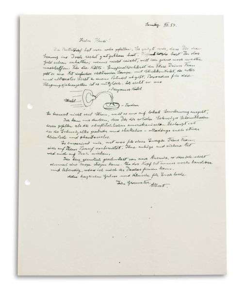L.A.S. « Dein Grossvater Albert » avec DESSIN, dimanche décembre 1954, à « LieberHardi » [son petit-fi ls Bernhard Caesar EINSTEIN] | ¾ page in-4 | en allemand.
