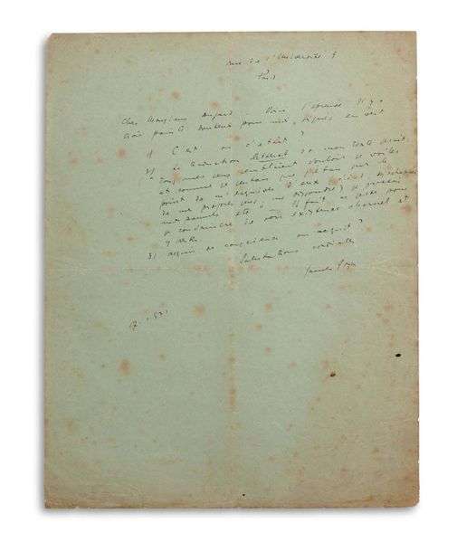 L.A.S. « James Joyce », Paris 17 janvier 1921 [pour 1922], à Maurice MARTIN DU GARD | demi-page in-4 sur papier vert (légères rousseurs) | en français.