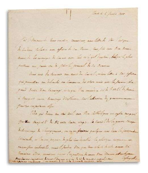 L.A.S. « Lafayette », Paris 4 février 1788, à Louis-Guillaume OTTO (1754-1817) | 1 page petit in-4 (petite trace de rouille d’un trombone) | en français.