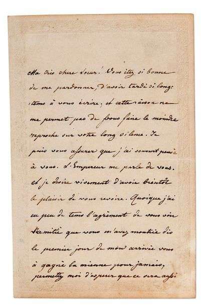 MARIE-LOUISE (1791-1847) Impératrice des Français, seconde femme de Napoléon Ier L.A.S. «Louise», Gand 17 mai 1810, [à sa belle-soeur la Reine HORTENSE]| 2 pages et demie in-8 à bordure décorative gaufrée.