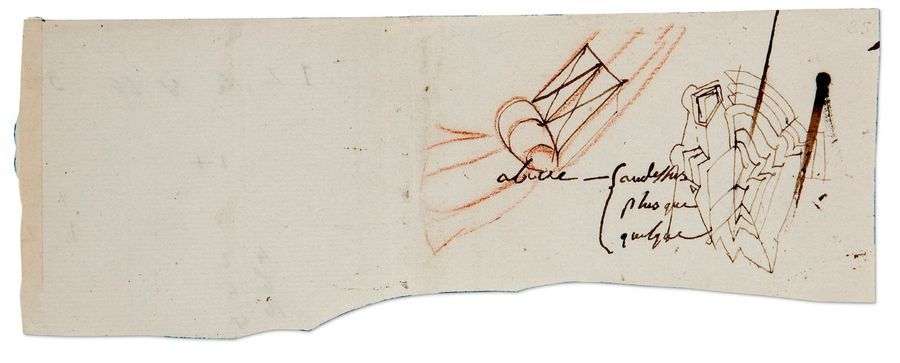 NAPOLÉON Ier (1769-1821) Empereur CROQUIS originaux avec 6 mots autographes| fragment oblong d'environ 10 x 6 cm (quelques chiffres autographe au verso).
