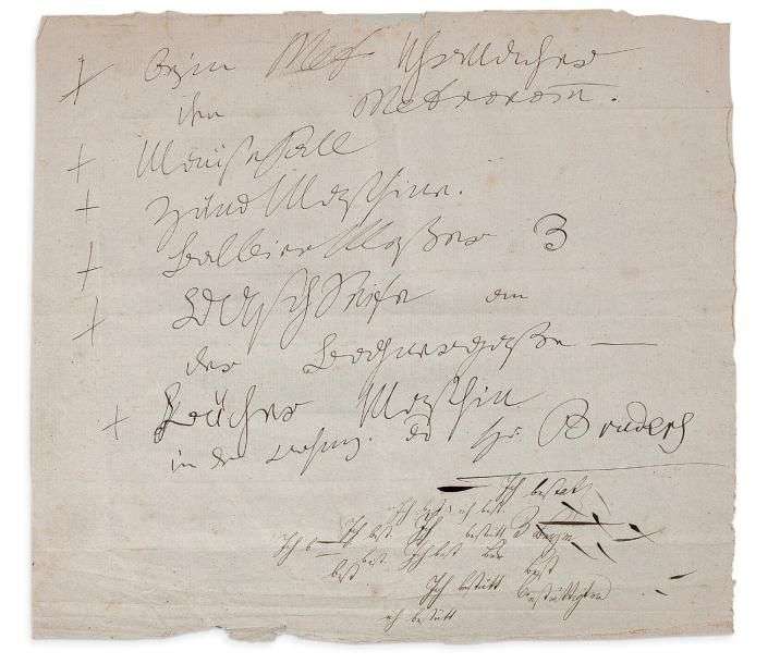 NOTE autographe, [Vienne vers 1817]| 9 lignes sur 1 page oblong in-4 (22,5 x 24,5 cm) au fi ligrane Iglau Altenberg| au-dessous, essais de plume d'une autre main| en allemand| sous chemise de cuir suédé rouge brun.