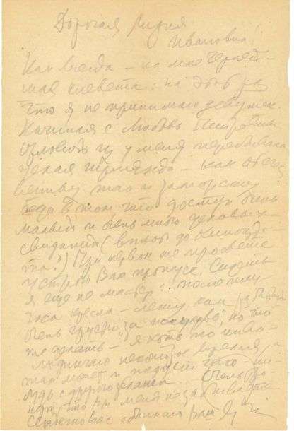 L.A.S. «S.M. Eisenstein», à Lyla Ivanovna| 1 page petit in-fol.