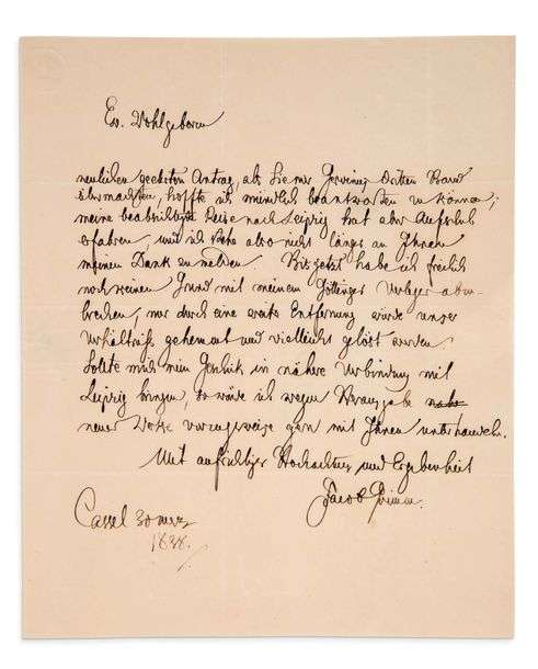 L.A.S. «Jacob Grimm», Cassel 30 mars 1838, à Wilhelm