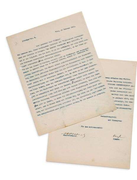 L.S. «Herzl», Wien 26 février 1901, à un collègue| contresignée par un secrétaire| 2 pages in-4 ronéotées (trous de classeur)| en allemand.