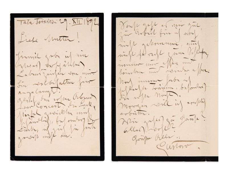 L.A.S. «Gustav», Tata Tóváros (Hongrie) 29 décembre 1892, à SA MÈRE| 2 pages in-8 (petit deuil| légère fente au pli)| en allemand.