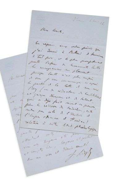 L.A.S. «F. Liszt», Vienne 6 août 1846, au comte Gustave de NEIPPERG]| 5 pages et demie in-8 sur papier bleuté au timbre BATH couronné| en français.