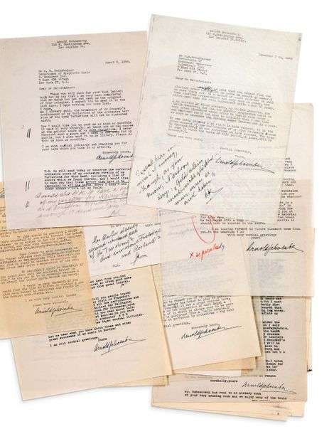 13 L.S. «Arnold Schoenberg», dont 4 avec postscriptum autographe, Los Angeles 1947-1950, à Hans