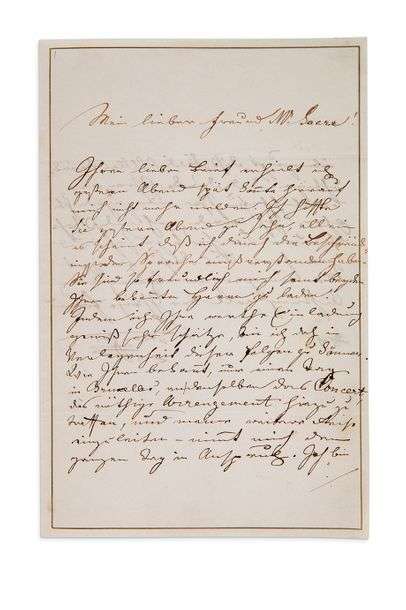 L.A.S. «J. Strauss», [Bruxelles] 13 avril 1849, à son ami M. SACRE| 1 page et demie in-8 à bordure dorée| en allemand.