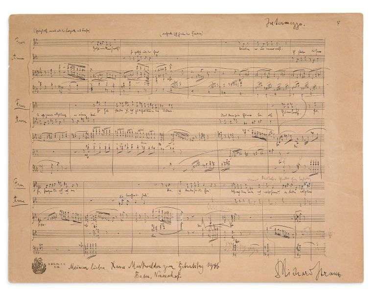 MANUSCRIT MUSICAL autographe signé «Richard Strauss», Intermezzo| 2 pages oblong in-fol.