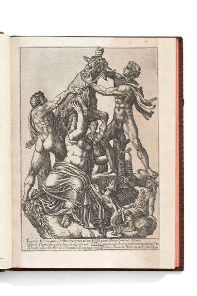 Antiquarum statuarum urbis Romae primus et secundus liber. S.I, 1585. In-4, plein basane brun, triple filet d'encadrement et fleurs aux angles à froid, dos à nerfs, pièce de titre de maroquin brun, roulette de palmettes à froid sur les coupes et intérieur, tranches rouges (Reliure XVIIe).