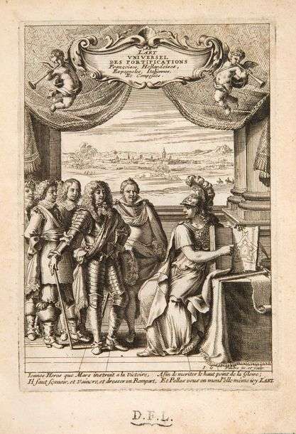 Frontispice et 4 figures à pleine page gravés sur cuivre par Le Pautre, grande planche d'armoiries au verso du titre, et 93 grandes figures sur cuivre dans le texte (figures géométriques et plans de fortifications principalement). Les gravures pp. 58 et 59 n'ont pas été tirées.