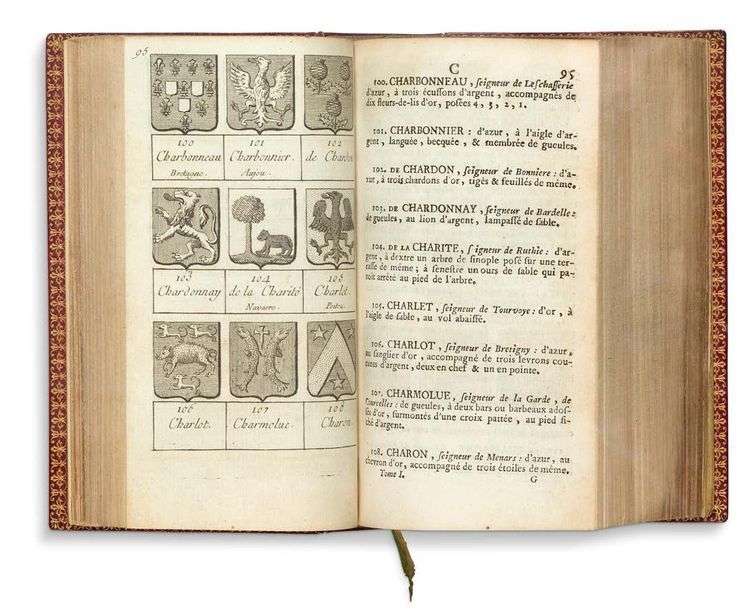 Édition originale, illustrée de 6 planches d'armoiries et 180 planches recto-verso comprenant environ 4000 petits blasons, le tout gravé en taille-douce.