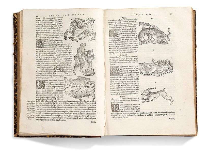 Seconde édition princeps de ses Fabulae, un des plus célèbres livres de mythologie dans lequel Hyginus décrit les constellations et leurs corrélations mythologiques. On y découvre quelque 300 mythes grecs et généalogies célestes, certains disparus aujourd'hui, notamment Arastus et Erathostène qui étaient enseignés au IIIe siècle avant notre ère.