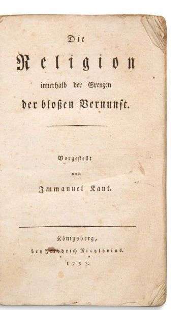 - Die Religion innerhalb der Grenzen der bloken Vernunft. Königsberg, Friedrich Nicolovius, 1793.