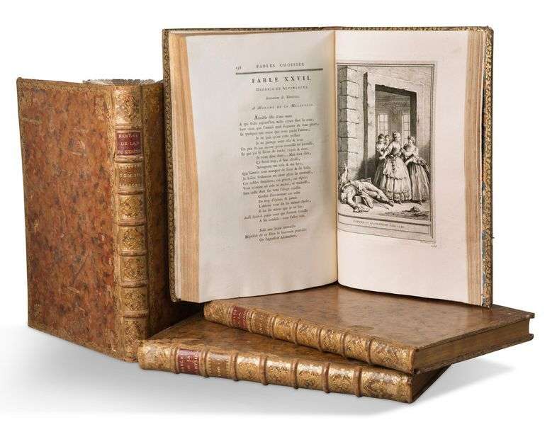 La figure du Singe et le léopard est en second tirage. exemplaire dans une élégante reliure décorée de l'époque, auquel on a ajouté un portrait gravé d'Oudry.