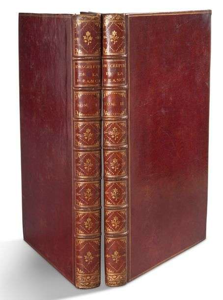 Description générale et particulière de la France. Paris, 1780-1781-[1784]. 2 volumes in-folio, maroquin rouge, triple filet doré, dos orné, roulette intérieure, tranches dorées (Reliure de l'époque).