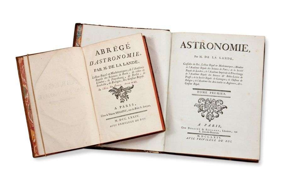 Édition originale qui mettra Lalande au premier rang des astronomes européens. Il destine cet ouvrage surtout aux jeunes astronomes: «Je déclare sans peine qu›il doit y avoir beaucoup de fautes dans mon ouvrage [...] D›ailleurs je n›ai pas pris beaucoup de peine pour chercher une faute|il y avait trop de temps à perdre et trop d›ennui à éprouver ...».